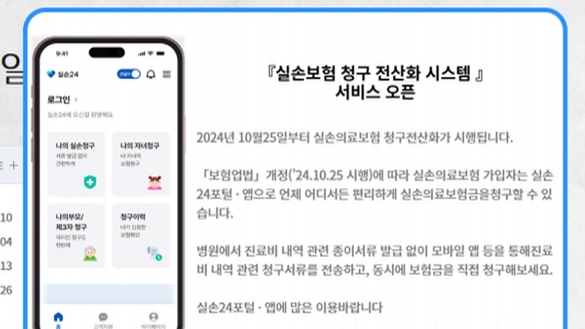 - 본인 청구: 종이 서류 없이 직접 실손보험을 청구