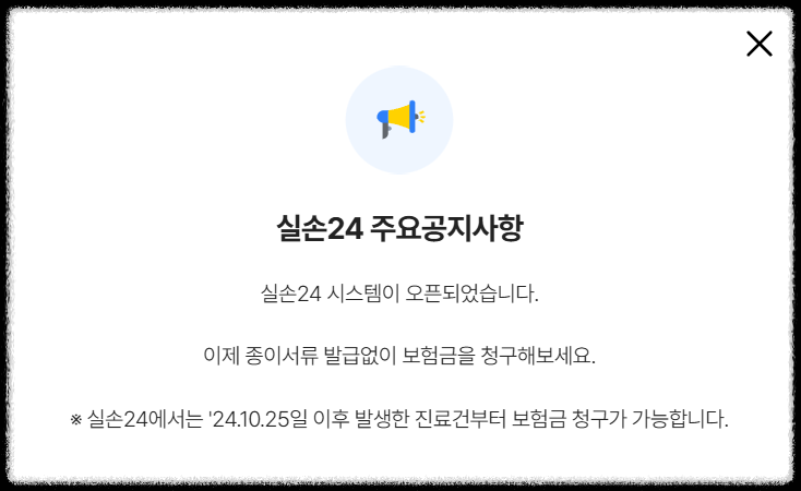 2024년 10월 25일 이후 발생한 진료 건에 대해 실손보험 청구가 가능합니다.
