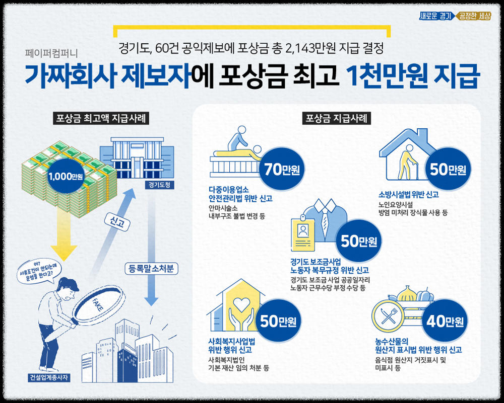 - 신고 내용이 확인되면 최저 3만 원부터 최대 300만 원까지 포상금을 받을 수 있으며, 10만 원 이상이면 일부를 온누리상품권이나 지역 특산물로 받을 수 있습니다.