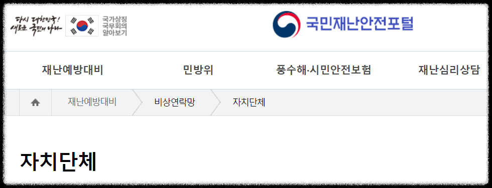 우리나라 국민재난안전포털 사이트에 우리나라 자치단체 비상연락망에 전국을 한번에 모아놨습니다. 이곳을 통해 전국 시청, 도청, 군청 홈페이지를 쉽게 찾아 볼 수 있습니다.