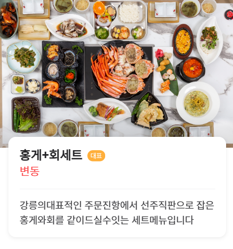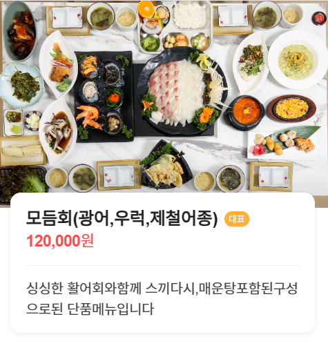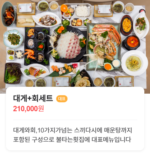 | 대게+회 세트 중 | 대게 1마리 + 모둠회 + 스끼다시 | 220,000원 |
