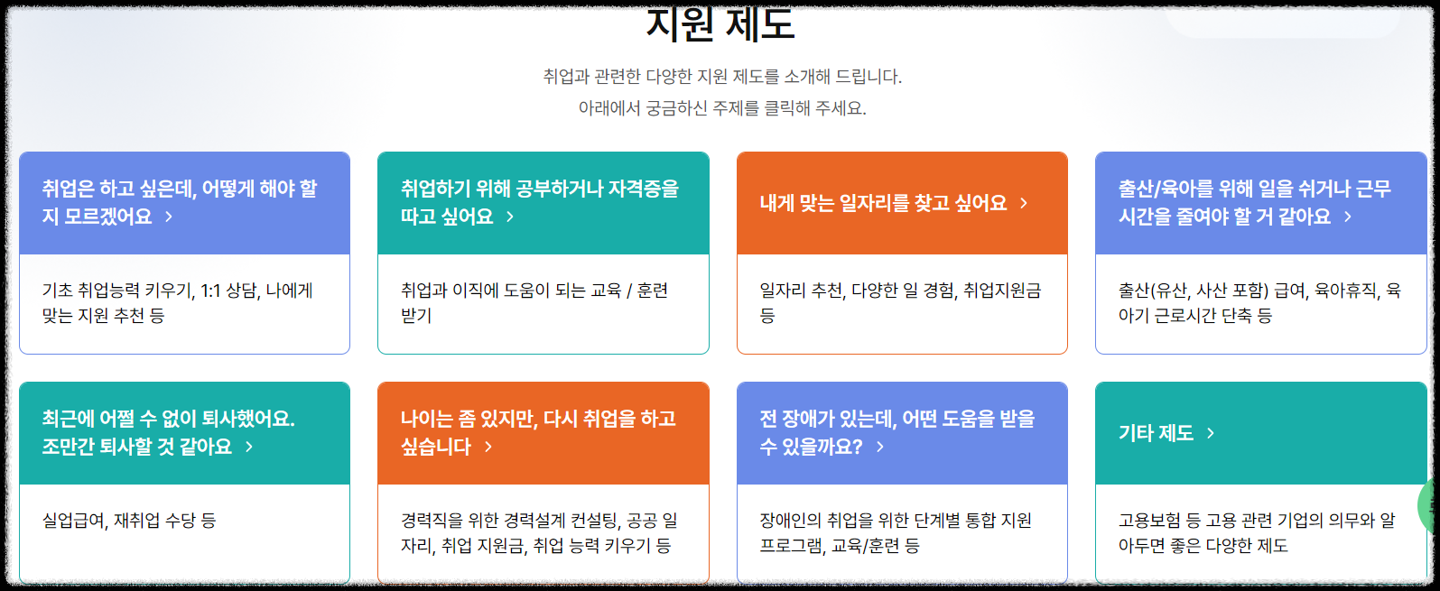 | 신청 자격 | 고용보험 가입자, 비자발적 실직, 재취업 의사 |