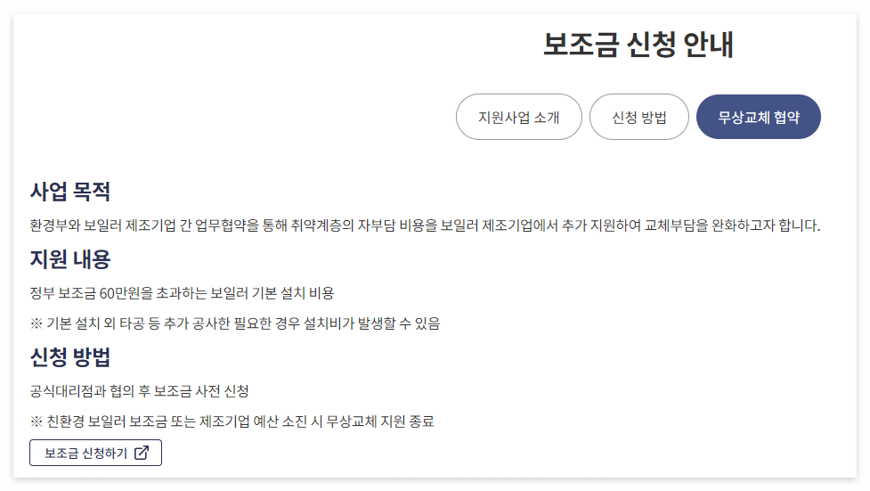 이번 사업은 특히 저소득층 및 취약계층을 대상으로 하며, 대기오염 물질 저감에 기여하는 고효율 보일러 설치를 장려하기 위해 마련되었습니다.