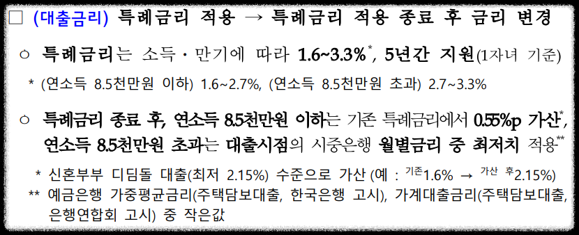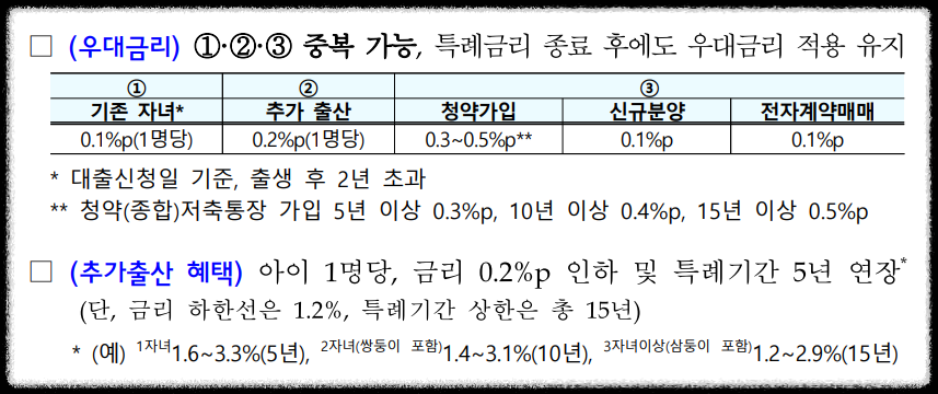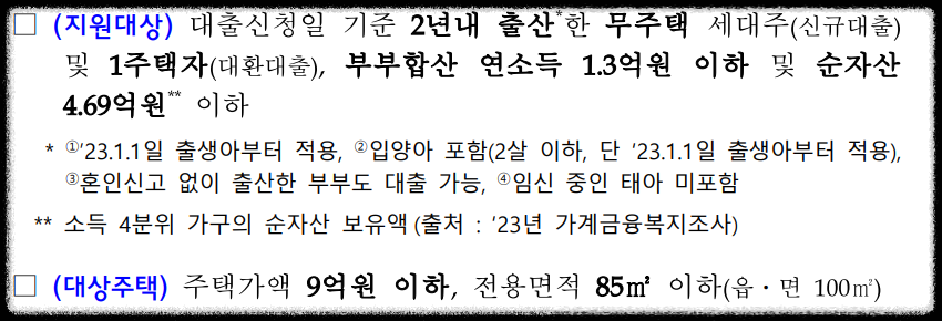 | 신청 자격 | 신생아 출산 또는 입양 가정, 소득 요건 충족, 신용 등급 조건 |