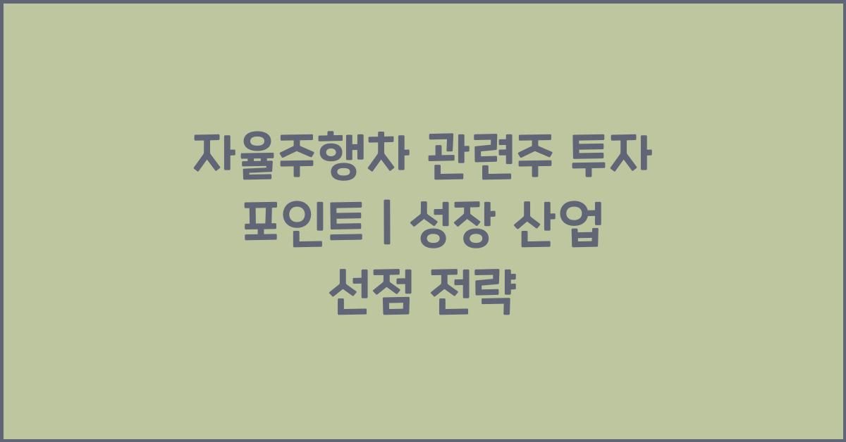 자율주행차는 앞으로의 자동차 산업에서 중요한 혁신이 될 것입니다. 많은 투자자들이 이 기회를 놓치지 않기 위해 자율주행차 관련주에 관심을 보이고 있습니다. 하지만 이 투자에는 많은 정보와 전략이 필요합니다.