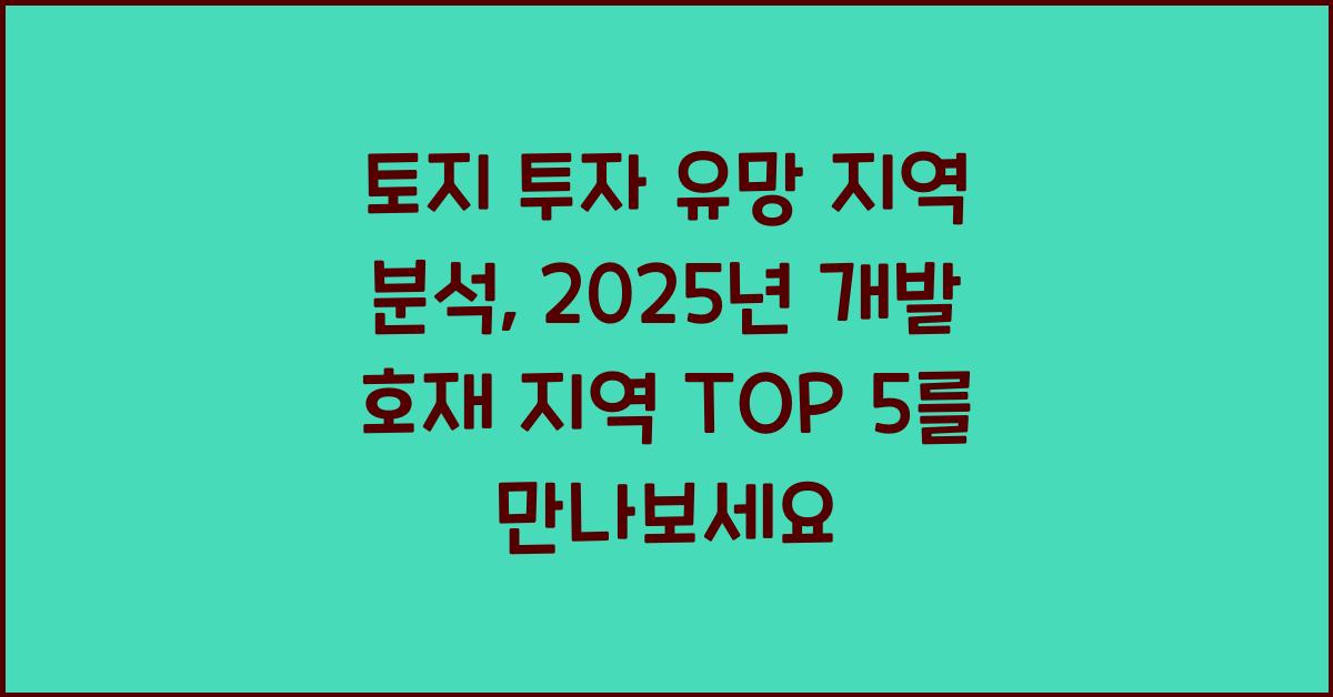토지 투자는 장기적인 투자 중에서도 특히 많은 관심을 받고 있는 분야입니다. 하지만 지역에 따라 성장 가능성이 크게 다르기 때문에, 올바른 선택이 중요합니다. 그래서 이번 글에서는 토지 투자 유망 지역 분석을 통해 2025년 개발 호재 지역 TOP 5를 소개하려고 합니다. 투자 결정을 내리는 데 큰 도움이 될 것입니다!