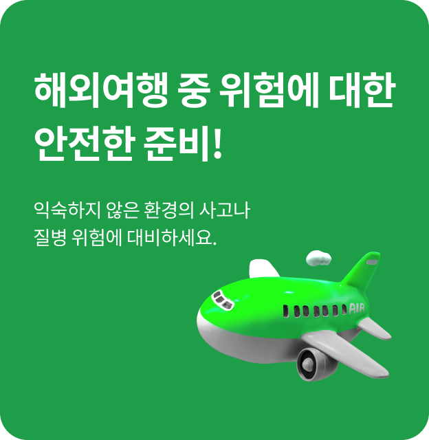 | 여행엔 보험 | 고급형 | 상해사망, 상해후유장해, 항공기 수하물 지연 20만 원, 전염병 치료비 20만 원 | 13,680원 |