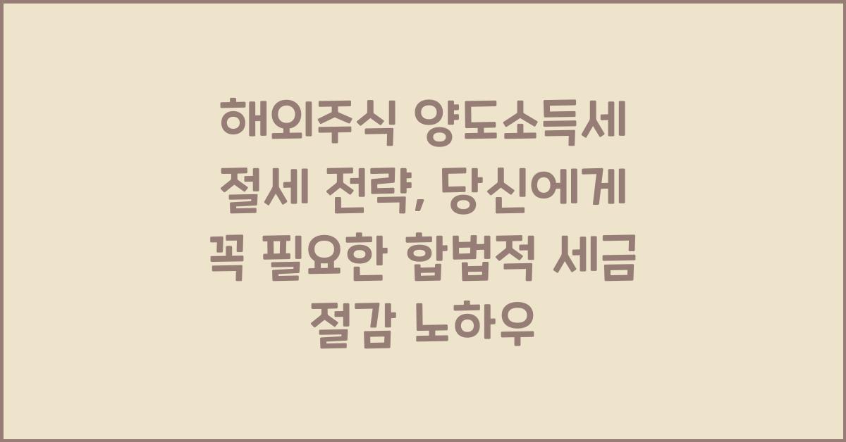 해외 주식 거래에 따른 양도소득세는 개인 투자자에게 큰 부담이 됩니다. 특히, 큰 수익을 얻었을 때는 더욱더 신경이 쓰이죠. 하지만 양도소득세 계산에 대한 정확한 이해와 함께 몇 가지 절세 전략을 통해 이 부담을 줄일 수 있습니다.