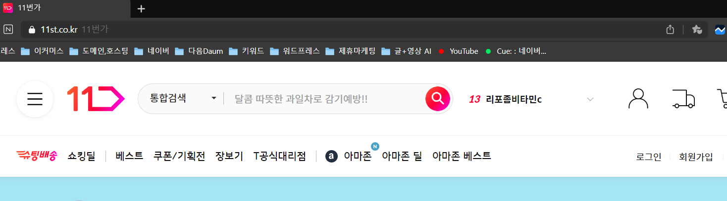 1. 네이버, 다음, 구글 등 포털 사이트에서 11번가를 검색한 후 홈페이지↗에 접속합니다.