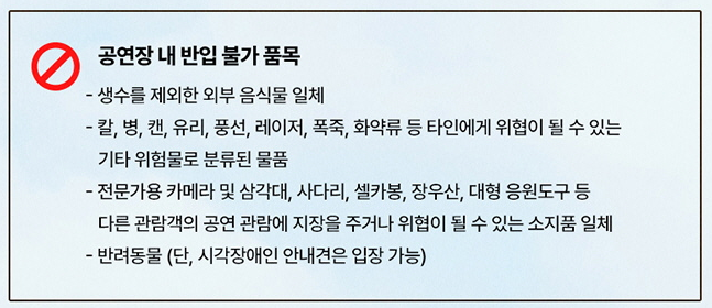 - 공연 당일 서울 월드컵경기장 주차장은 이용이 불가하니 참고하셔야 합니다.