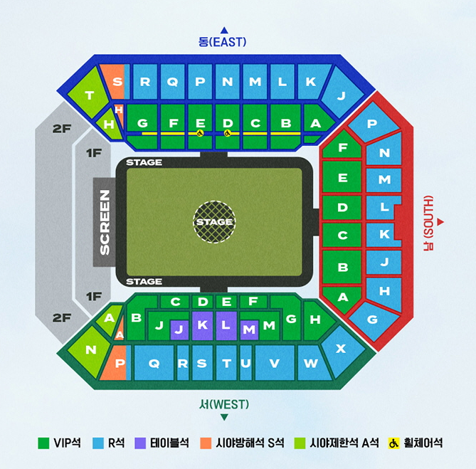 - 좌석은 그라운드를 포함한 다방면을 무대로 활용하므로 시야 방해가 발생할 수 있습니다. 이에 대한 안내를 숙지하고 예매를 진행하세요.