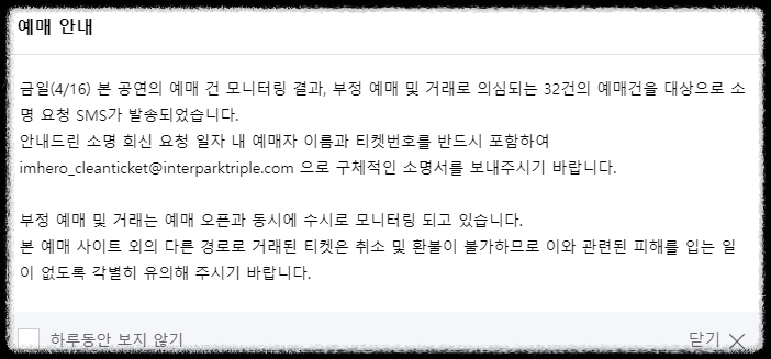 - 티켓 예매는 4월 10일 오후 8시에 인터파크 티켓에서 시작됩니다.
